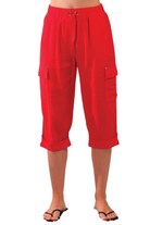 Pull-On Red Capri Pant with Cargo Pockets and Tabs on Leg Bottom