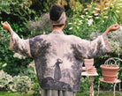 Kimono measurements: length 58cm, width (across back, underarm to underarm) 74cm. Model is 5’2” for reference.
