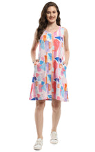 Elevate your everyday style with this Parley & Sage vibrant, sleeveless A-line dress, designed for both comfort and flair. Featuring a playful and colorful geometric print inspired by watercolor patterns, this dress effortlessly adds a pop of personality to your wardrobe. The soft, breathable fabric ensures all-day comfort—perfect for casual outings, travel, or relaxed weekends. Key Features: - *Sleeveless Design*: Offers a cool and airy feel, ideal for warmer days. - *A-Line Silhouette*: Flattering fit that gently drapes over the body, suitable for all body types. - *Colorful Watercolor Geometric Print*: Stands out with eye-catching hues of pink, blue, orange, and purple. - *Functional Side Pockets*: Adds convenience and a laid-back vibe. - *Above-the-knee Length*: Great for a youthful and stylish look. - *Round Neckline*: Simple and versatile, perfect for layering with accessories. Pair it with sneakers for a casual day look or dress it up with sandals and statement jewelry for a chic daytime ensemble. This dress is the perfect blend of playful aesthetics and everyday functionality.