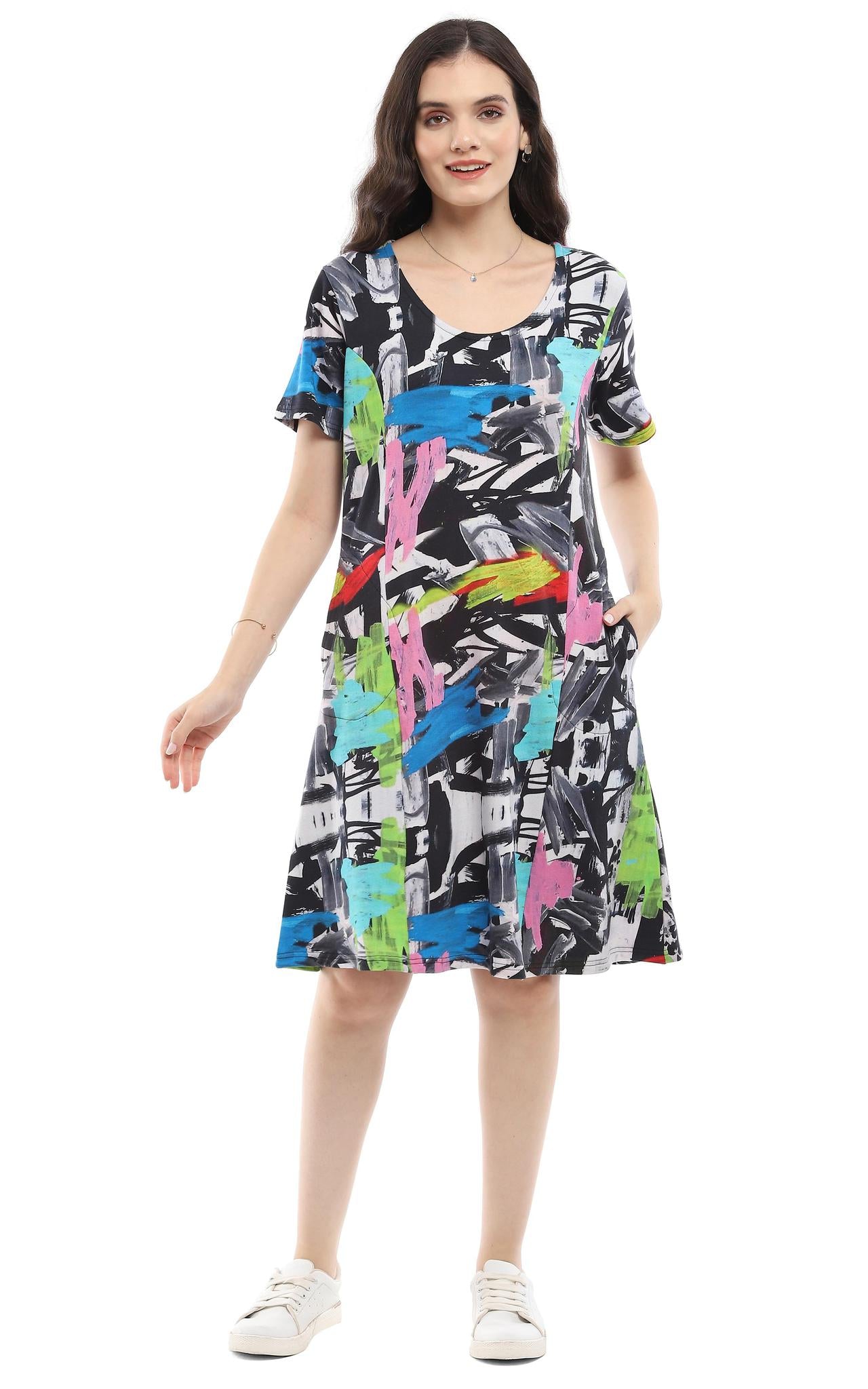 Elevate your casual wardrobe with this arsley & Sage vibrant, knee-length dress featuring a bold and artistic abstract print. Crafted from a soft, breathable fabric, this dress ensures maximum comfort and ease of movement, perfect for everyday wear or weekend outings. The relaxed A-line silhouette flatters all body shapes, while the short sleeves and round neckline offer a laid-back yet stylish appeal. Practical side pockets add functionality, making it ideal for on-the-go lifestyles. Pair it with your favorite sneakers for a modern, effortlessly chic look. Perfect for those who appreciate unique designs and carefree style, this dress is a must-have addition to your collection
