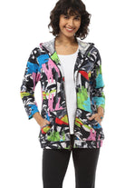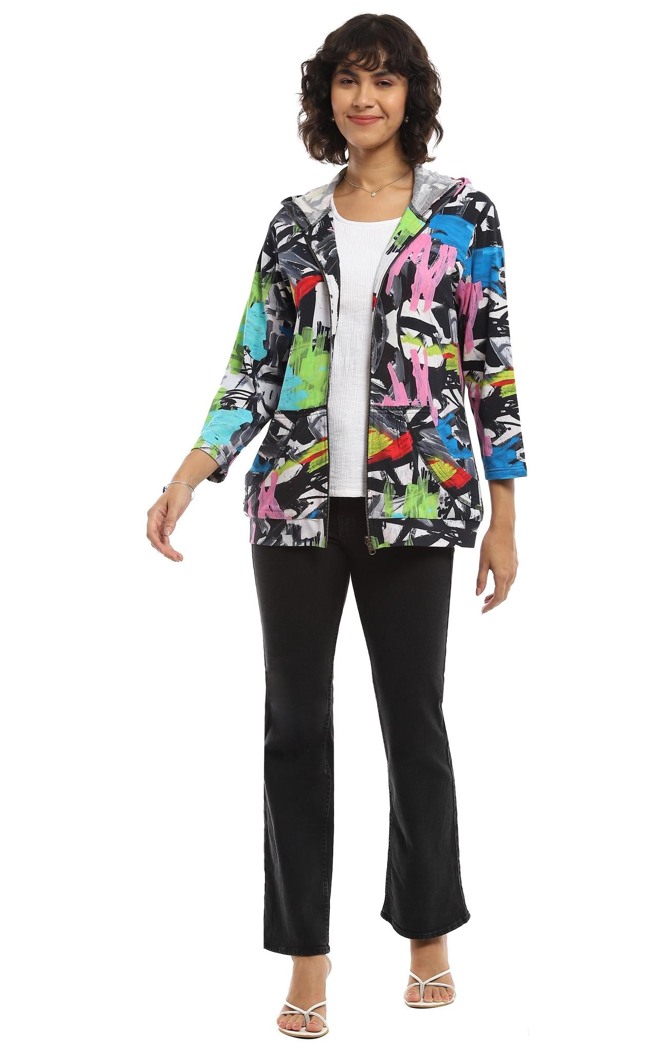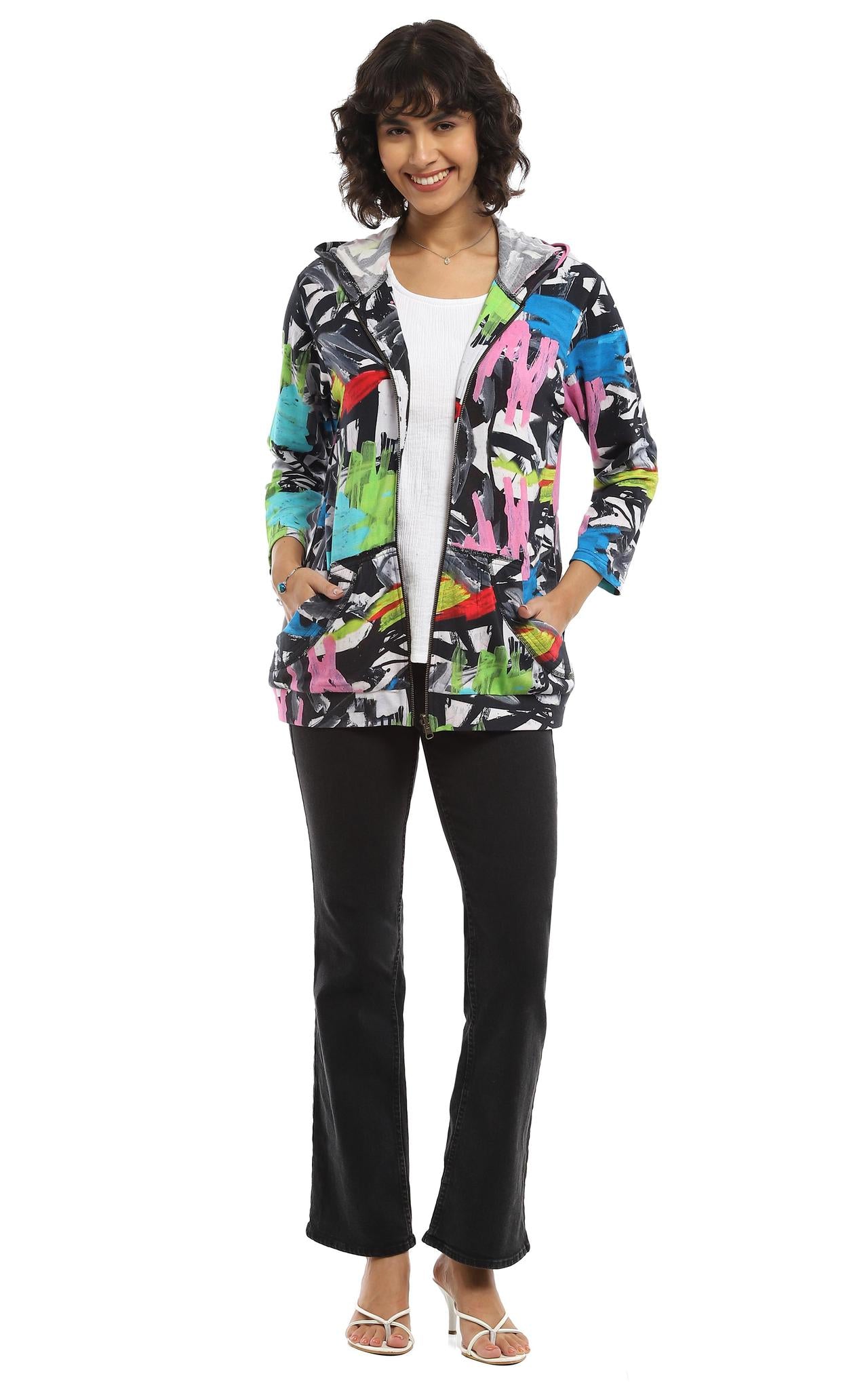 This vibrant and stylish zip-up hoodie is perfect for adding a splash of creativity to your wardrobe. Featuring an artistic, multicolor abstract print, it combines bold splashes of pink, blue, green, black, and white for a modern and eye-catching design. Crafted from soft, breathable fabric, it ensures comfort and durability, making it ideal for casual outings, travel, or lounging. The hoodie includes a front zipper closure for convenience, long sleeves for added coverage, and a hood for extra warmth and style. Two front pockets provide practical storage for small essentials or a cozy place to warm your hands. With its relaxed fit and bold design, this hoodie pairs effortlessly with jeans, leggings, or shorts for a trendy everyday look that's sure to turn heads.