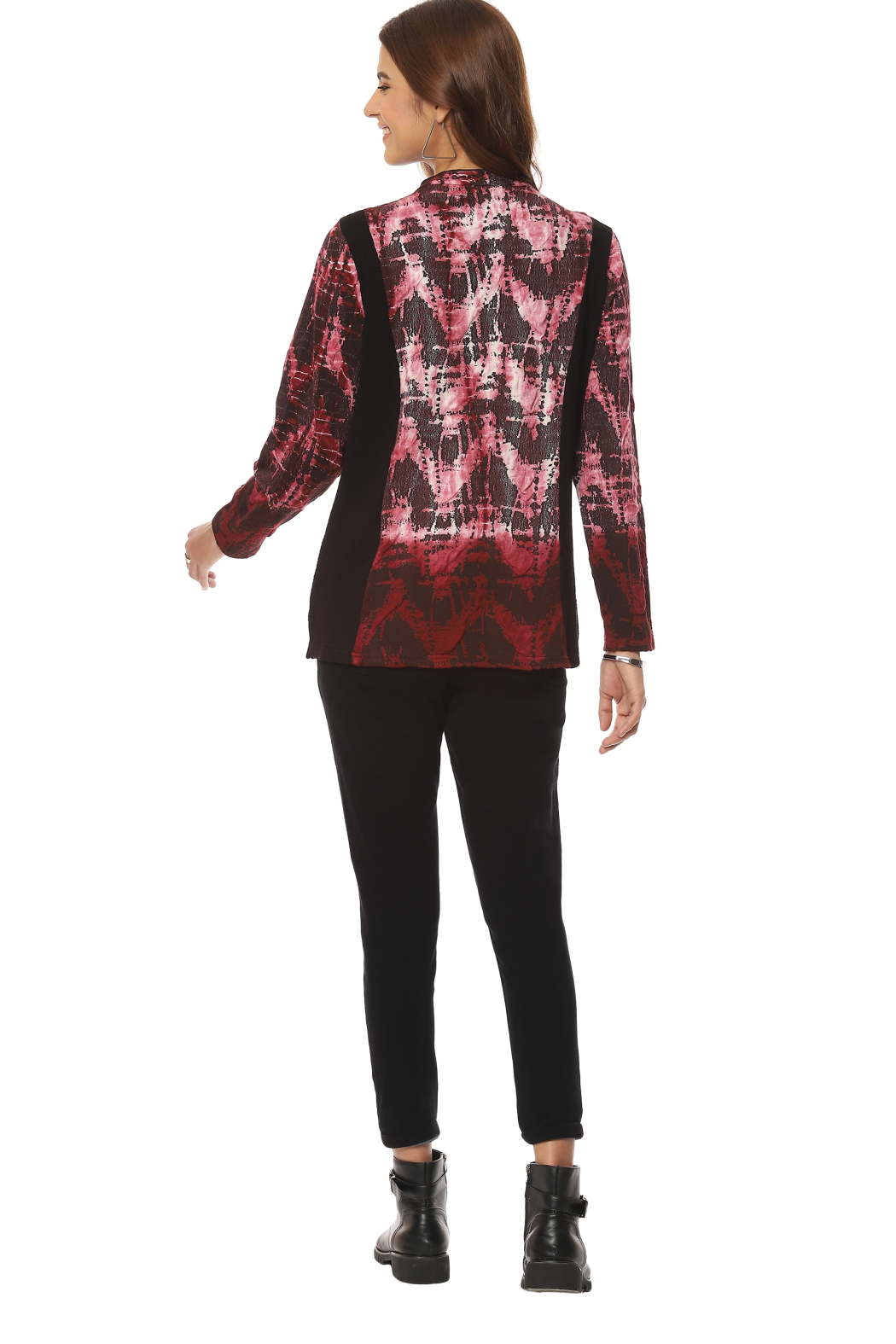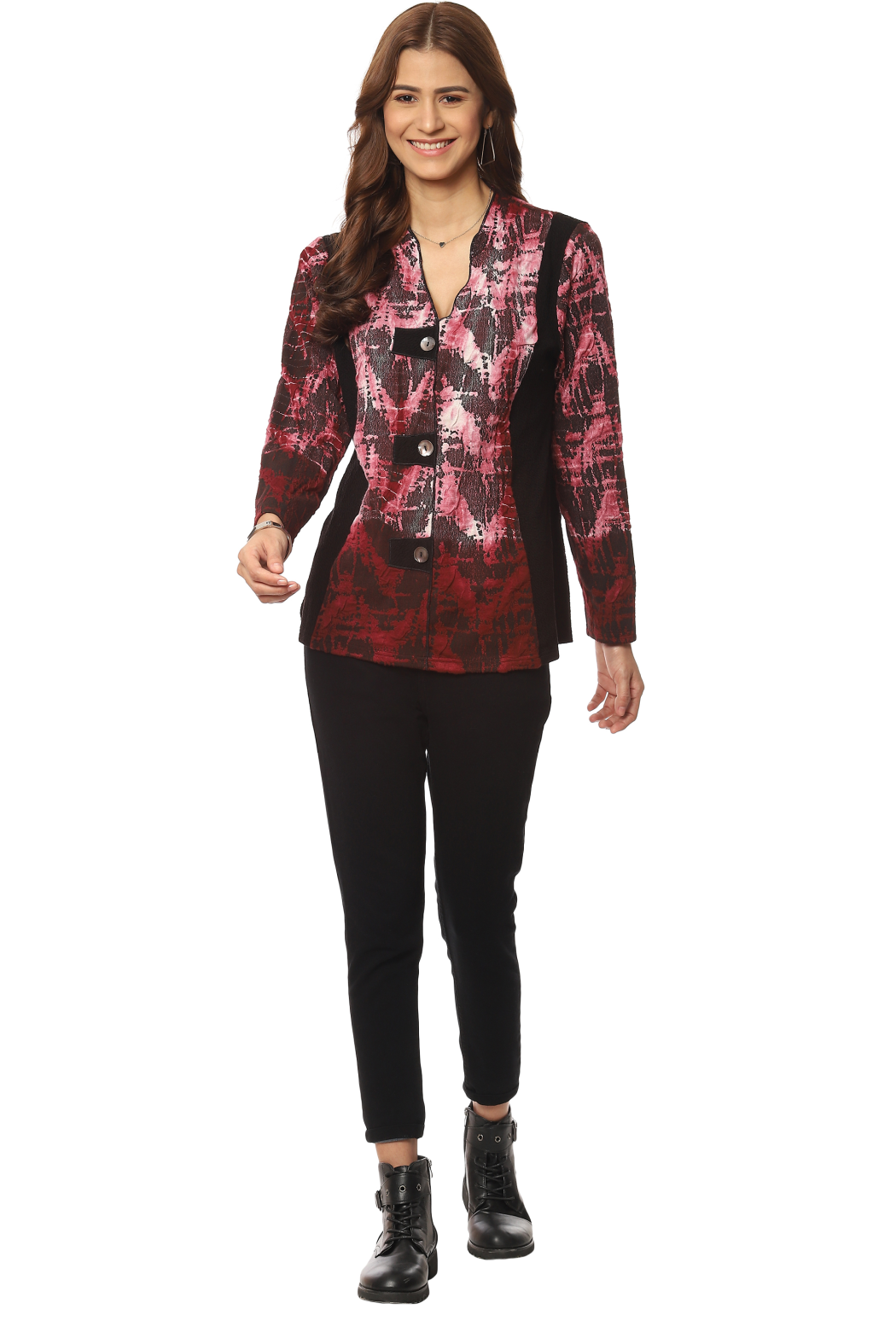 Parsley & Sage Burgandy Wine Knit Tunic wit Nivelty Buttons, Slimming Black Side Panels and Vee- Neckline
